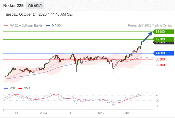 在 41800 之上,看涨,目标价位为 49700 ,然后为 53900 。