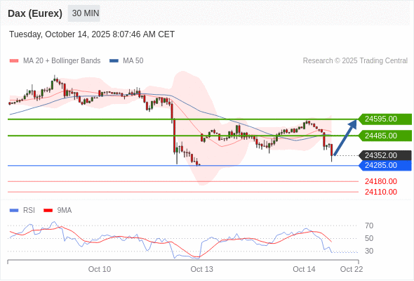 在 24285.00 之上,看涨,目标价位为 24485.00 ,然后为 24595.00 。