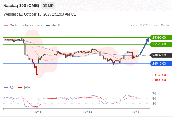 在 24540.00 之上,看涨,目标价位为 25170.00 ,然后为 25390.00 。