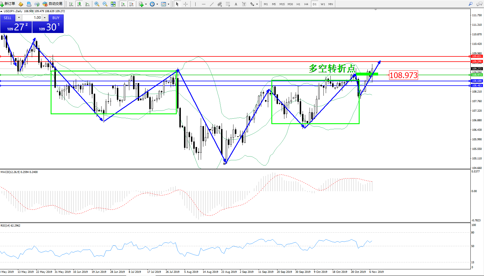 美元兑日元涨0.28%109.28,稍早曾升至逾五个月最高109.49,因对美中贸易谈判的乐观情绪,刺激美国国债收益率飙升。商务部表示过去两周中美双方牵头人就妥善解决各自核心关切,进行了认真、建设性的讨论,同意随协议进展,分阶段取消加征关税。双方按协议取消加征的关税,有利于稳定市场预期,有利于中美两国经济和世界经济。