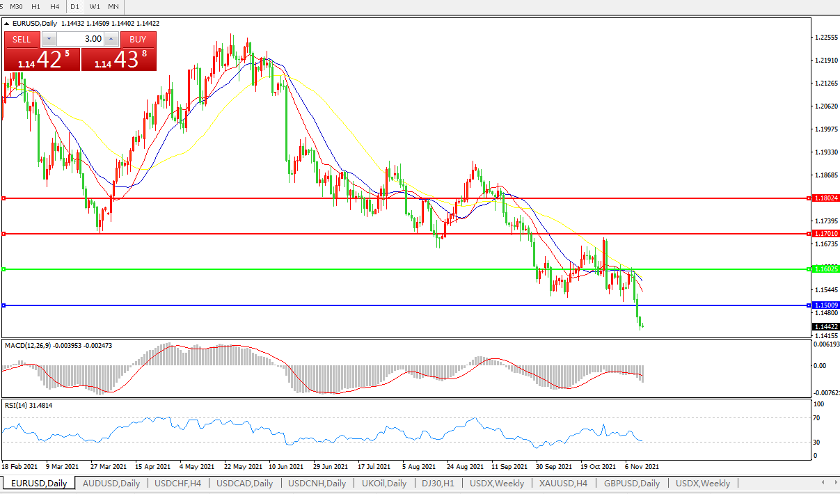 技术面简析:日图均线再度呈空头排列,汇价延续骤跌,MACD运行于0轴下且量能稍微放量,RSI拐头下行 ,预计短期汇价大概率将进一步下行。